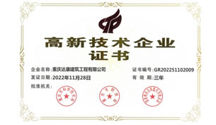 重慶達康建筑工程有限公司,于1993年8月注冊成立,公司注冊資金6128.71萬元,在職員工110余人,其中本科及以上學歷約40%-50%,擁有一、 二級注冊建造師數(shù)十人,擁有中級以上職稱數(shù)十人,各類從業(yè)資格證及上崗證書若干。公司擁有專業(yè)的技術施工人員和高效的管理團隊, 能充分滿足并獨立承擔與資質相匹配的工程施工需要;多次榮獲重慶市九龍坡區(qū)“守合同重信用單位”稱號,多次獲得“三峽杯”優(yōu)質結構獎和市級文明工地;合同履約率達到100%。